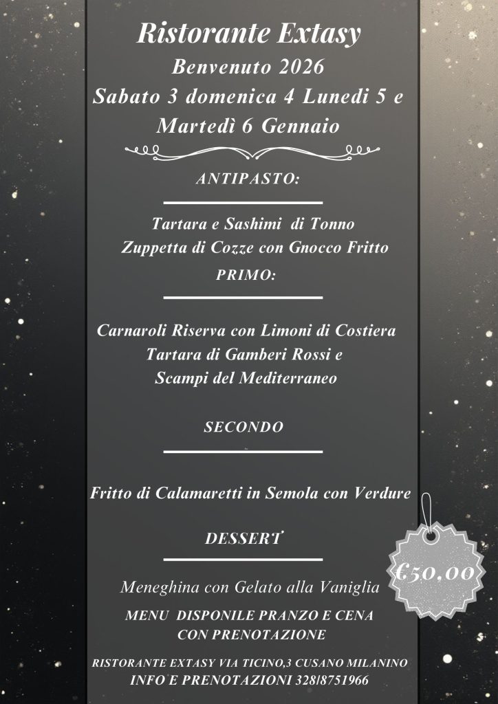 Sabato 3,Domenica 4,Lunedi 5 e Martedì 6 LA NOSTRA SPECIALITA:Plateau di Cruditè,Scampi, gamberi rossi e viola Sicilia, ostriche, ricci di mare, astici,aragoste alla Catalana il accompagnati da una selezione di Bollicine Franciacorta e Champagne. Chef Gianni S.