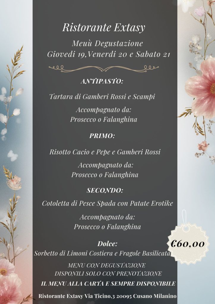 Giovedì 17, Venerdì 20 e Sabato 21 LA NOSTRA SPECIALITA:Plateau di Cruditè,Scampi, gamberi rossi e viola Sicilia, ostriche, ricci di mare, astici,aragoste alla Catalana il accompagnati da una selezione di Bollicine Franciacorta e Champagne. Chef Gianni S.